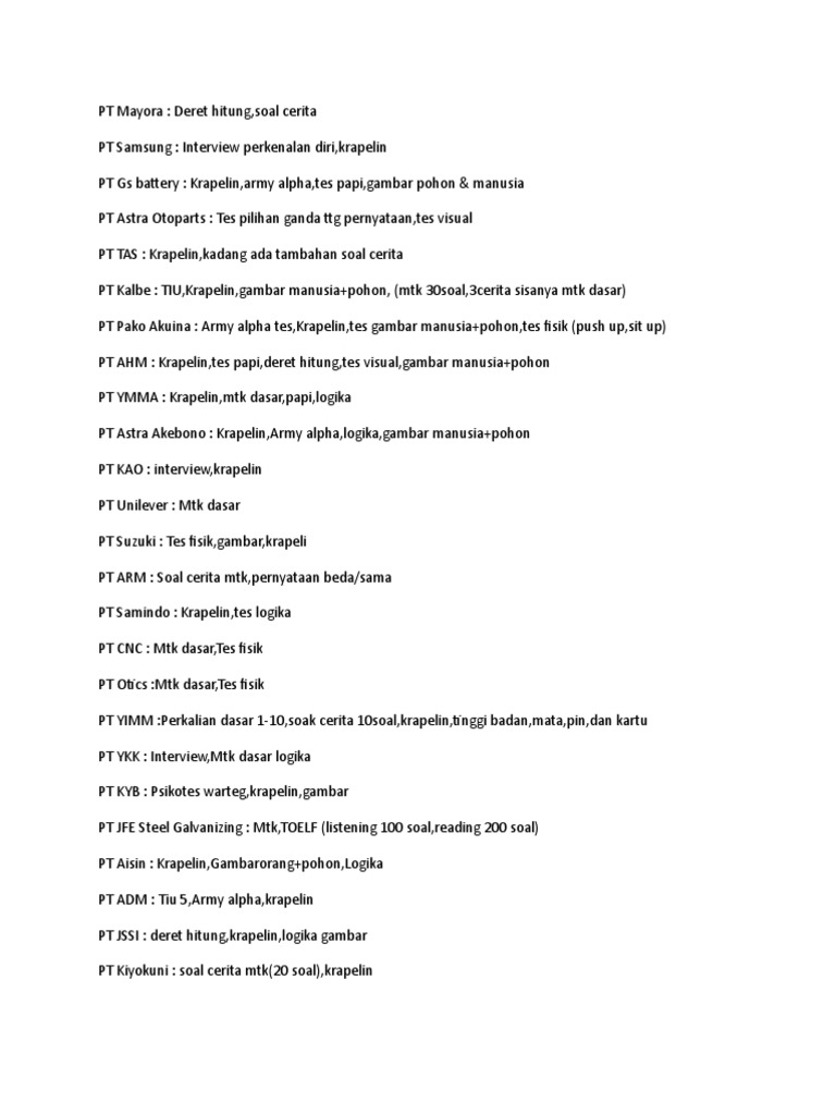 Kisi kisi pisikotes pt at / download contoh soal psikotes. Kisi kisi tes psikotes astra honda motor terbaru ahm. İsveç 16 pt kişilik testi ile ilgili bilimse. Pt gajah tunggal adalah salah satu perusahaan pembuat ban terbesar di indonesia, perusahaan ini telah didirikan sejak tahun 1951. Pisikotes matematika desimal at thedomainfo.